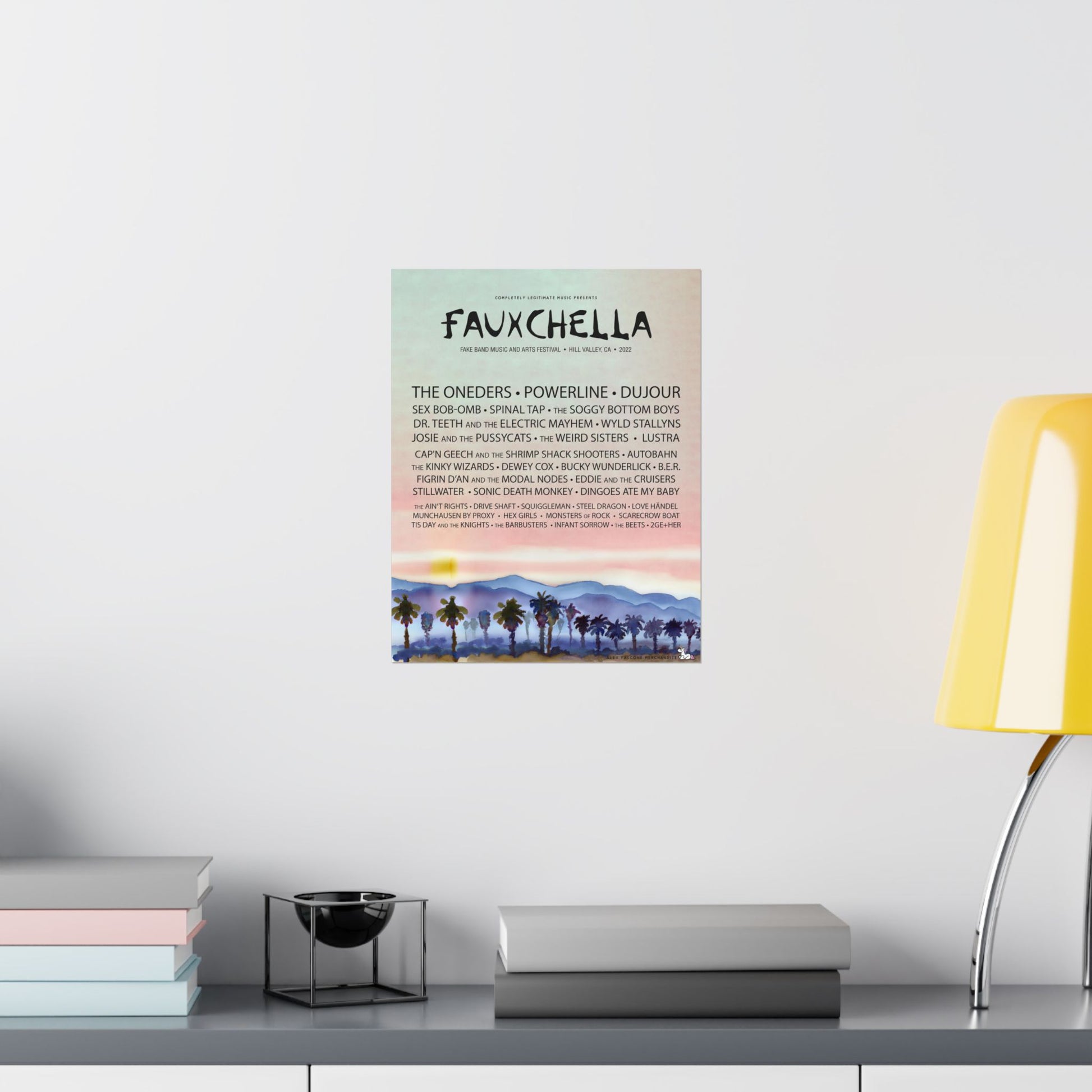 All of your favorite fake bands got together and played a massive festival in the California desert and you were there, or at least that's what people who see your sick-ass poster will think. It's a murderers-row of musical acts that don't actually exist: The Oneders, Powerline, Dujour (Dujour means merch) and so many more.