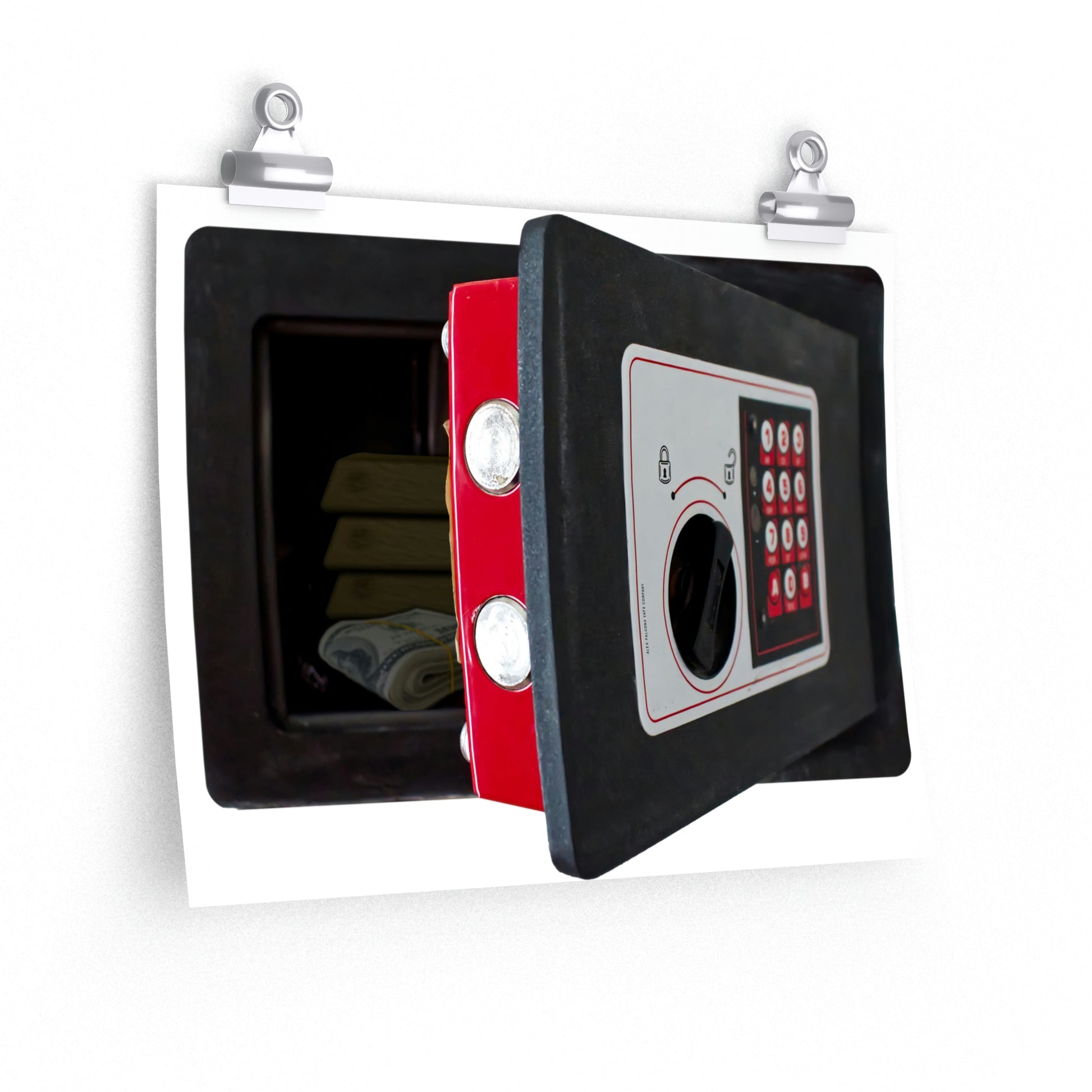 A more affordable option since this is not a very good idea anyway. Instead of a full-size sticker, this is just a picture of a wall safe printed on a real nice piece of paper that you can hang on your wall as-is or hide underneath other art.